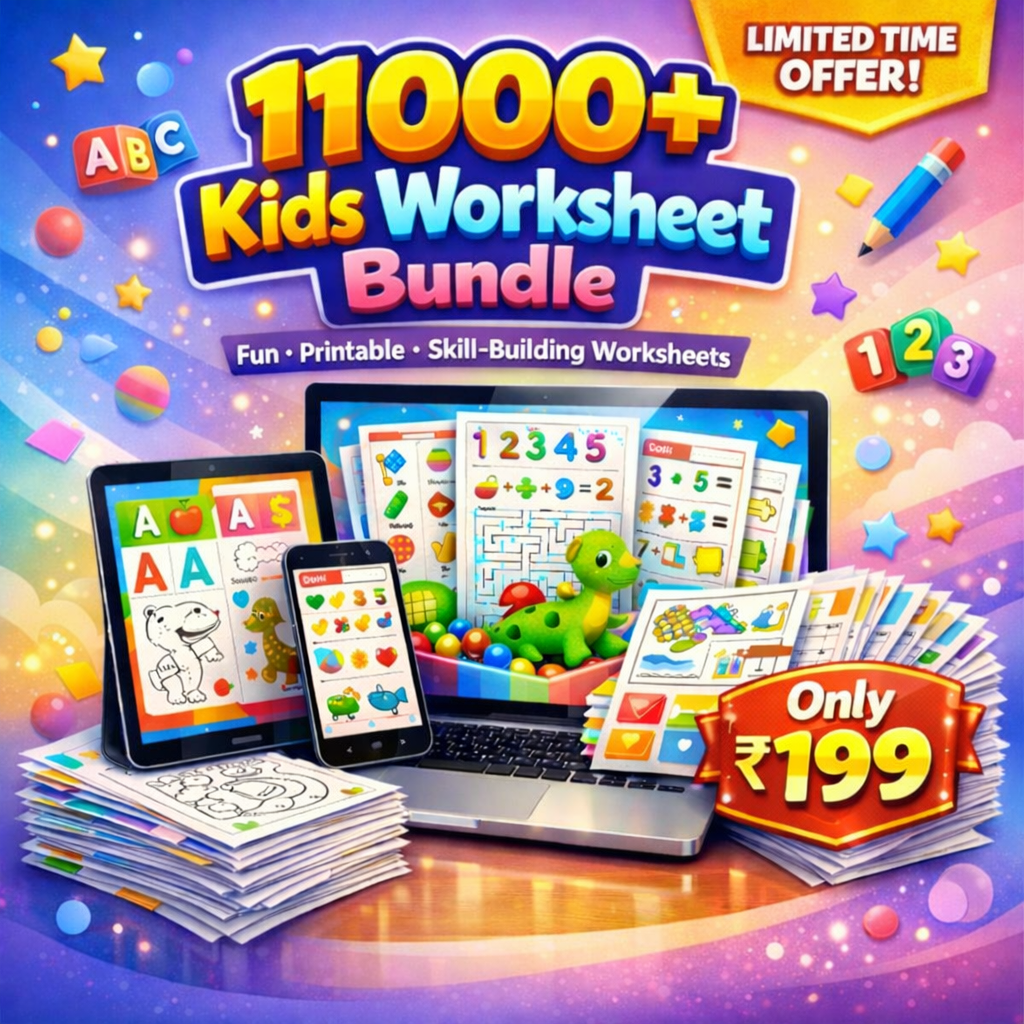 This bundle is ideal for kids aged 2 to 8 years, covering preschool, nursery, LKG, UKG, and early primary levels with age-appropriate activities.